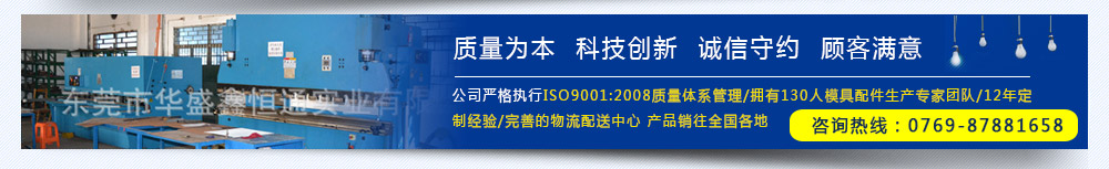東莞市華盛鑫恒通實(shí)業(yè)有限公司成立于2003年08月,總占地面積6200㎡,現(xiàn)有員工130人(其中本科以上技術(shù)研發(fā)人員8人),是一家致力于各種行業(yè)清洗架、鋼化架、模組頂針測試治具的專業(yè)非標(biāo)夾、治具設(shè)計制造商。公司擁有CNC加工中心(北京精雕)、沖床、剪板機(jī)、折彎機(jī)、線切割機(jī)、氬弧焊機(jī)、點(diǎn)焊機(jī)、碰焊機(jī)、車床、銑床、磨床、鉆床、攻牙機(jī)、超聲波清洗機(jī)等不同種類不同規(guī)格、10T-200T等各類加工設(shè)備90臺。公司嚴(yán)格執(zhí)行ISO9001:2008質(zhì)量體系管理,品質(zhì)檢測儀器分別有:現(xiàn)代化高端檢查設(shè)備投影儀(2.5次元檢測儀)、測硬器、鹽霧測試機(jī)若干。等經(jīng)過長期的摸索,擁有一批高素質(zhì)的生產(chǎn)隊(duì)伍及專業(yè)的工程技術(shù)人員,設(shè)計各種配套設(shè)施。 |